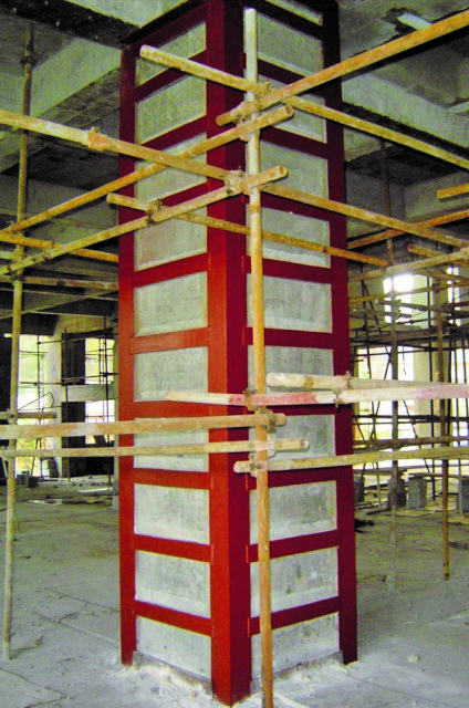 粘鋼/包鋼加固技術(shù)是將鋼板采用高性能的環(huán)氧類膠粘劑粘于混凝土構(gòu)件表面,使鋼板與混凝土形成統(tǒng)一的整體,利用鋼板良好的抗拉強(qiáng)度達(dá)到增強(qiáng)構(gòu)件承載力及剛度的目的,用結(jié)構(gòu)膠粘劑粘結(jié)的鋼板基本不增加被加固構(gòu)件的尺寸及重量,結(jié)構(gòu)膠固化快,完全固化后即可承載受力。